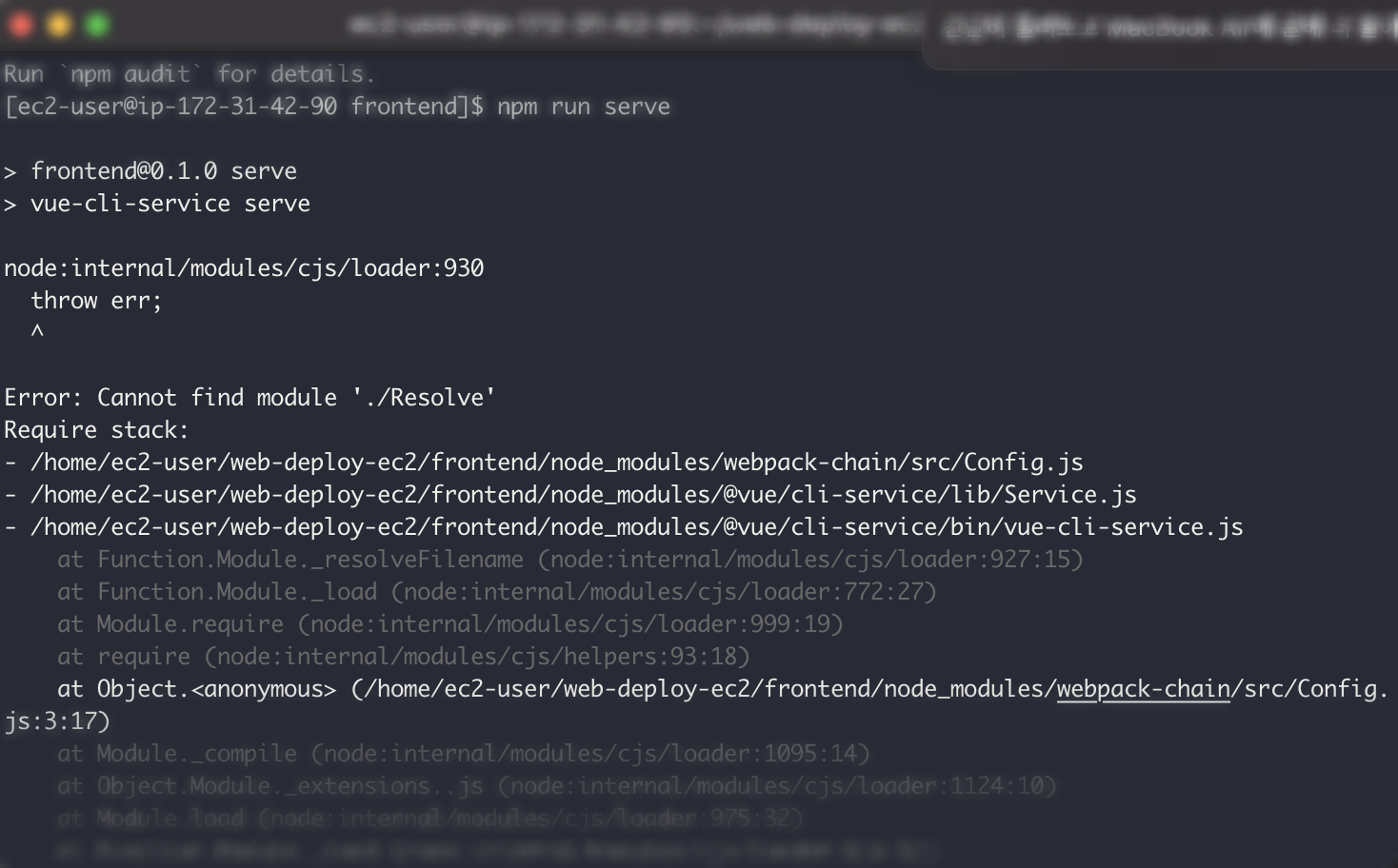 ec2가 너무 느려서 자꾸 껐다가 켰다가 이랬더니 모듈상 충돌이 난 것이 아닐까 하는 추측을 하고 있다.